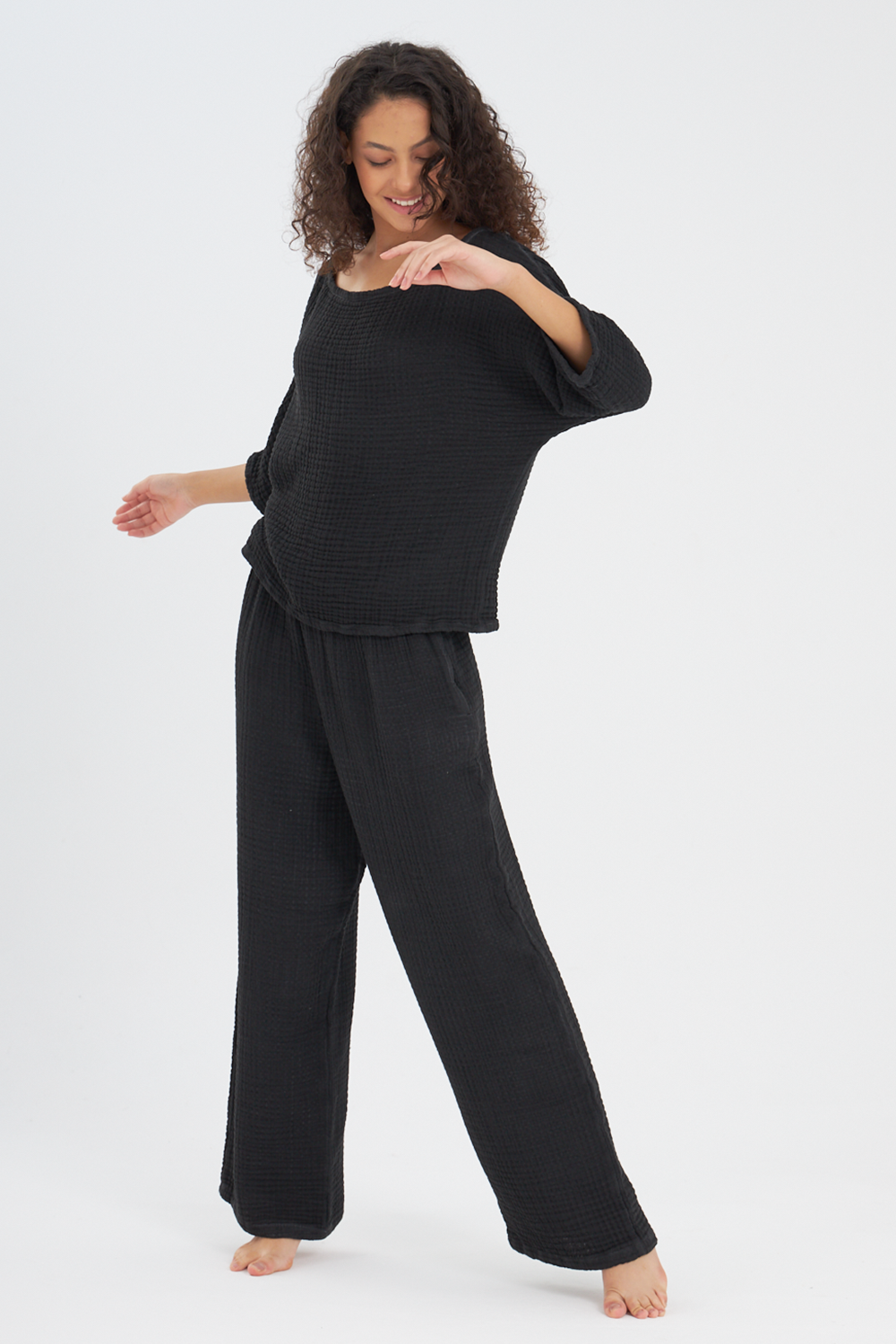 %100 Pamuk dört katlı kumaşı, yumuşak dokusu ve sıcacık görünümü ile yeni sezonda sizlerle