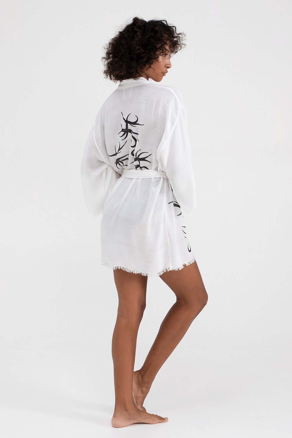 Doğal kumaşlar ile özenle dokunan bu kimono standart yapısı her bedene uyumludur.